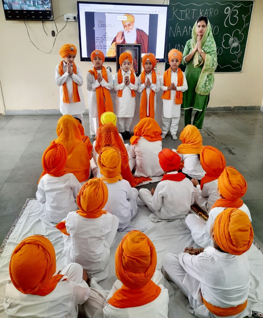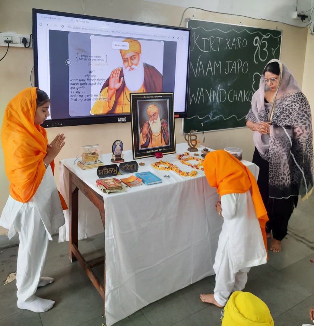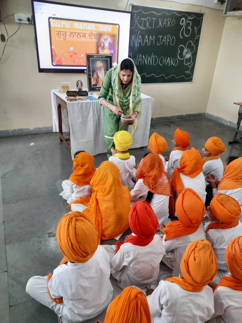 GuruPurab the Prakash utsav of Shri Guru Nanak Dev Ji was celebrated in the school with great enthusiasm by the following activities Special assembly, Drawing competition, Quiz Competition about the life of Guru Ji, Shabad Gayan ,Recitation of Paath(Shri Japuji Sahib) ,Essay writing ,Speeches ,Poem recitation , Prize distribution to the participants And at last Ardass by whole staff with Offering and distribution of Parsad .