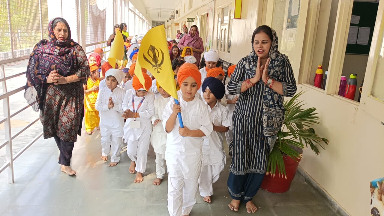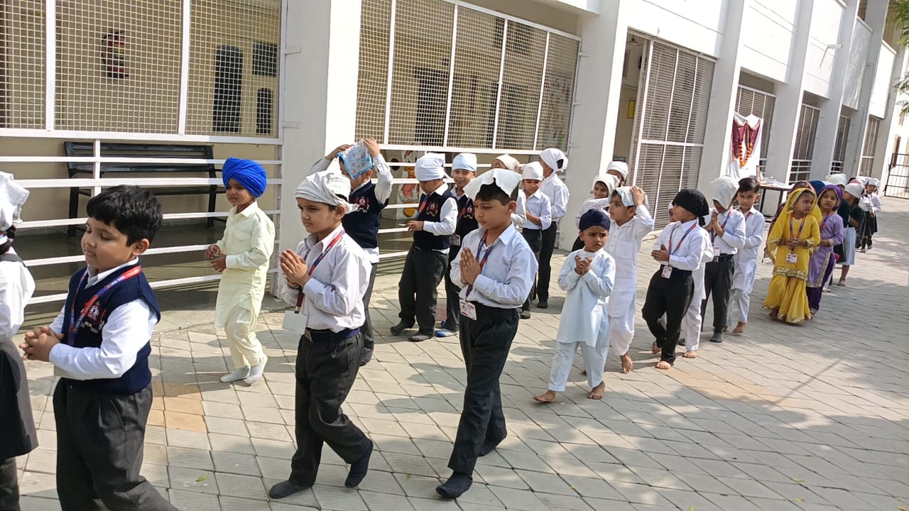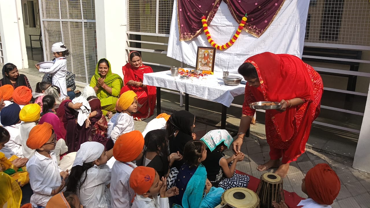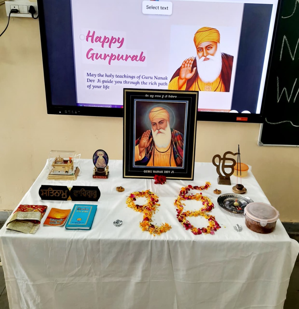 GuruPurab the Prakash utsav of Shri Guru Nanak Dev Ji was celebrated in the school with great enthusiasm by the following activities Special assembly, Drawing competition, Quiz Competition about the life of Guru Ji, Shabad Gayan ,Recitation of Paath(Shri Japuji Sahib) ,Essay writing ,Speeches ,Poem recitation , Prize distribution to the participants And at last Ardass by whole staff with Offering and distribution of Parsad .