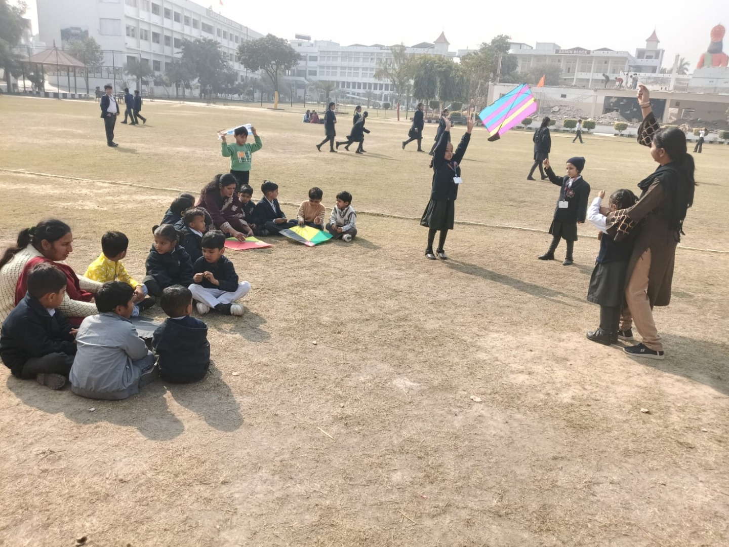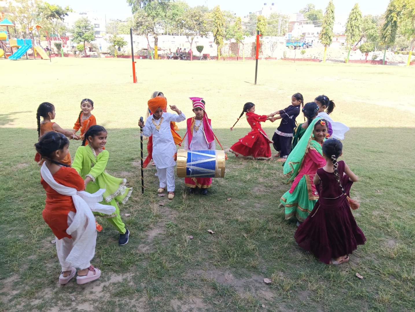 To cope up with stress and strain of Studies and to relax mind , students are involved in different activities and traditional games in school time to time.
