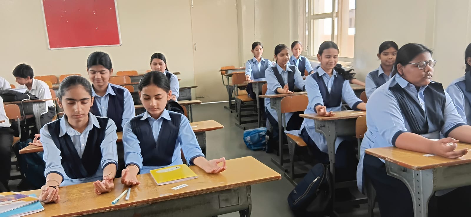Daily Morning Assembly goes on in School including School Prayer,Thought of the day,Daily news reading,Greeting to Birthday Students and concludes with National Anthem with the rhythm of School band.