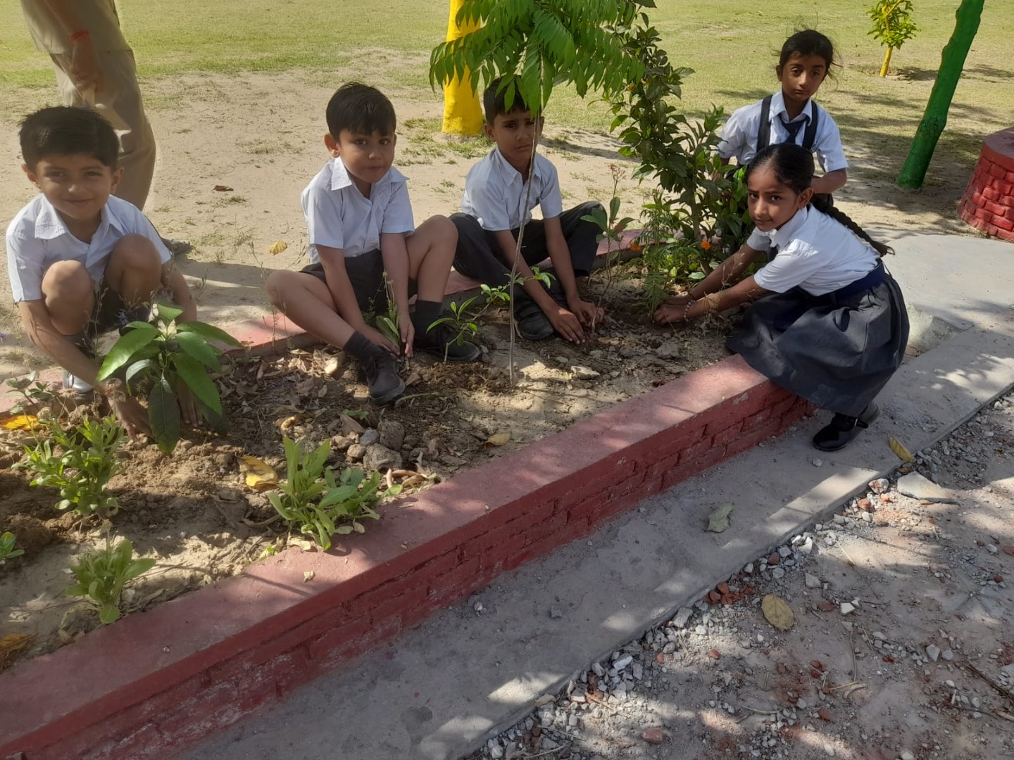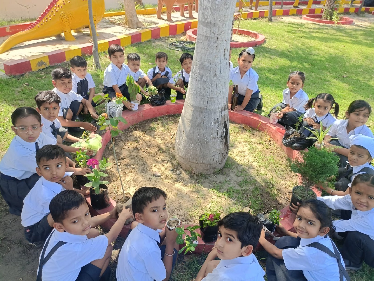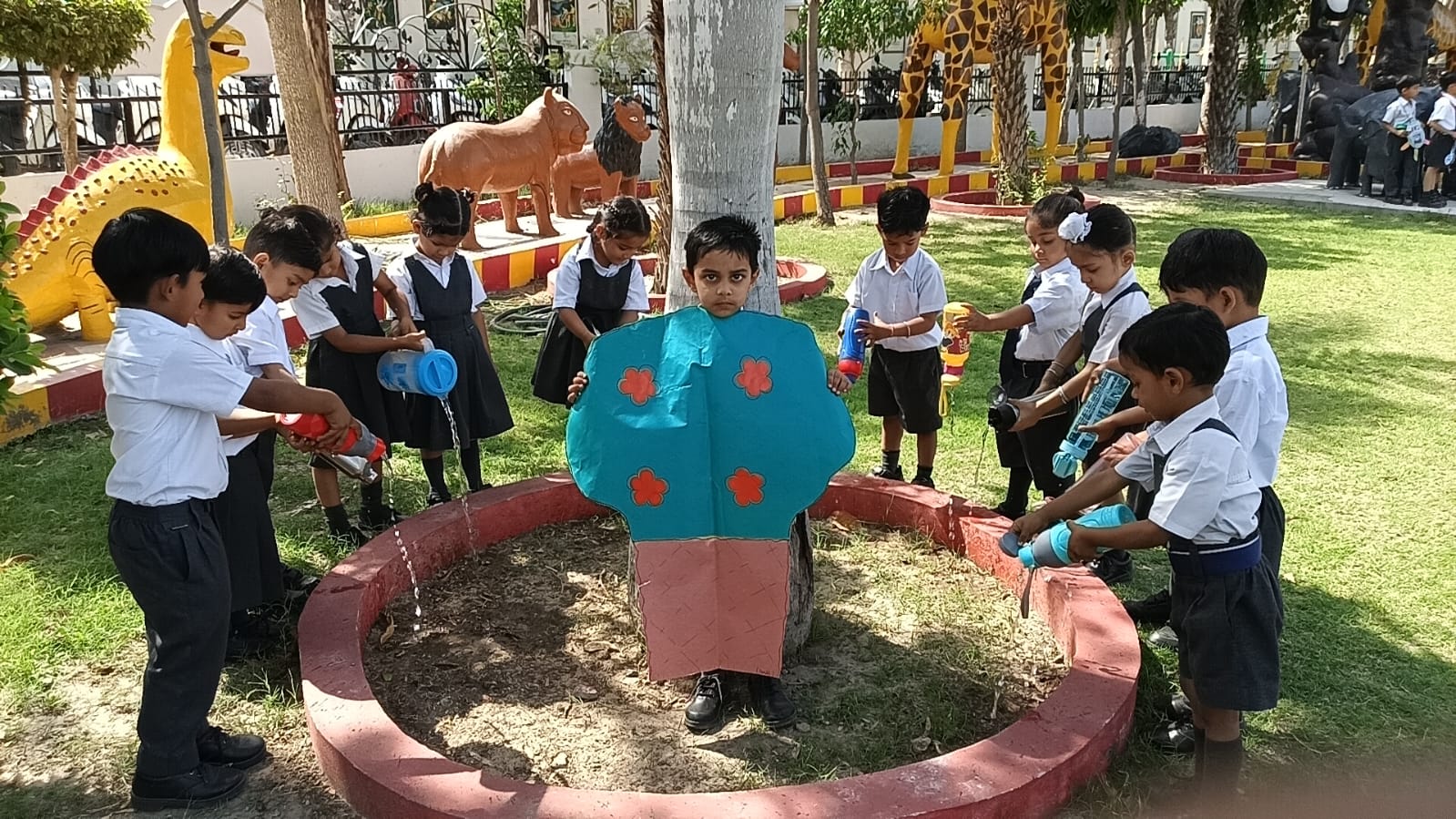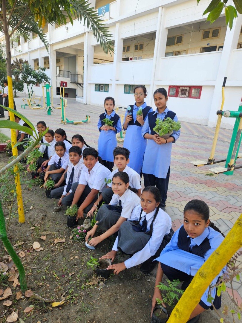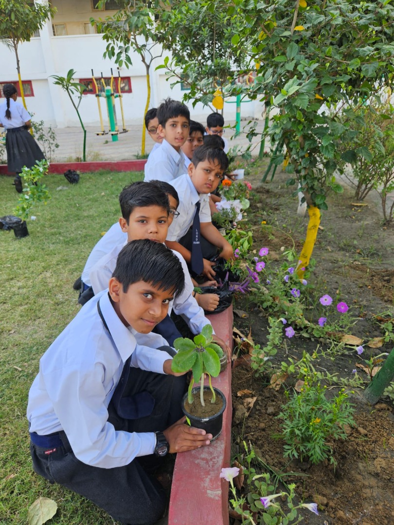 Students preparing and designing the garden with waste material (water bottles, wrappers etc) by learning the 3R system (reduce,reuse and recycling). Birthday students doing plantation in the little garden..