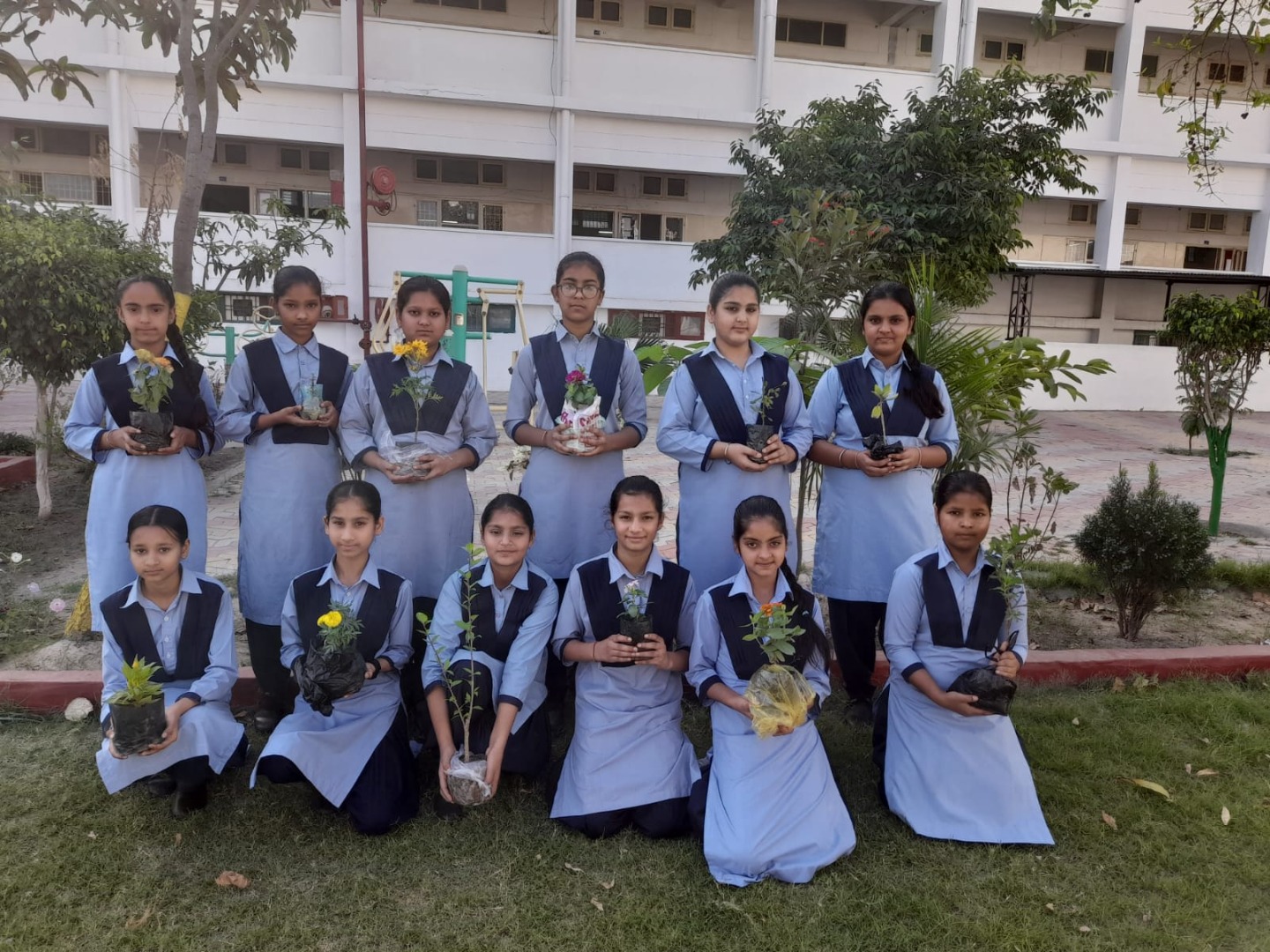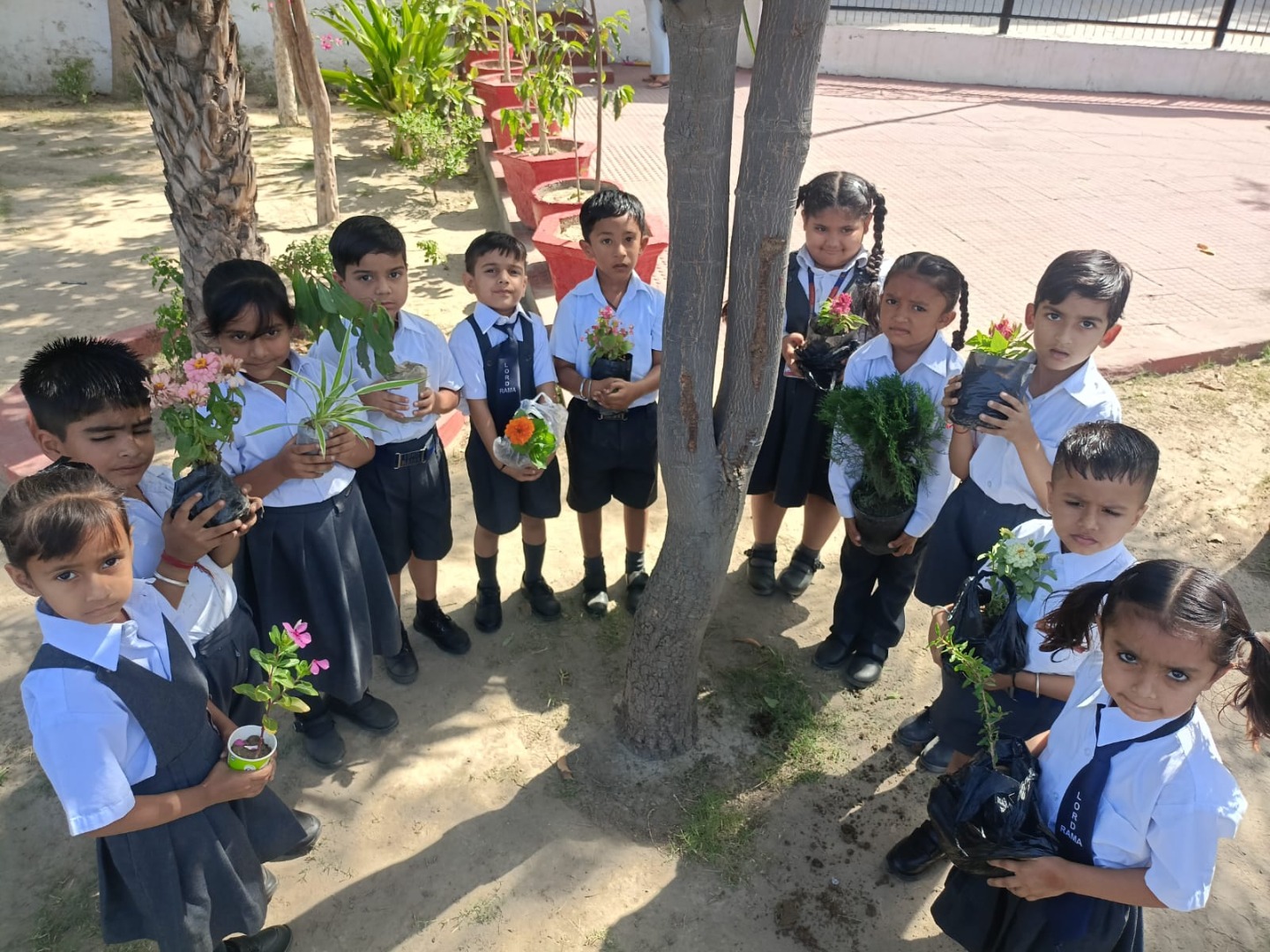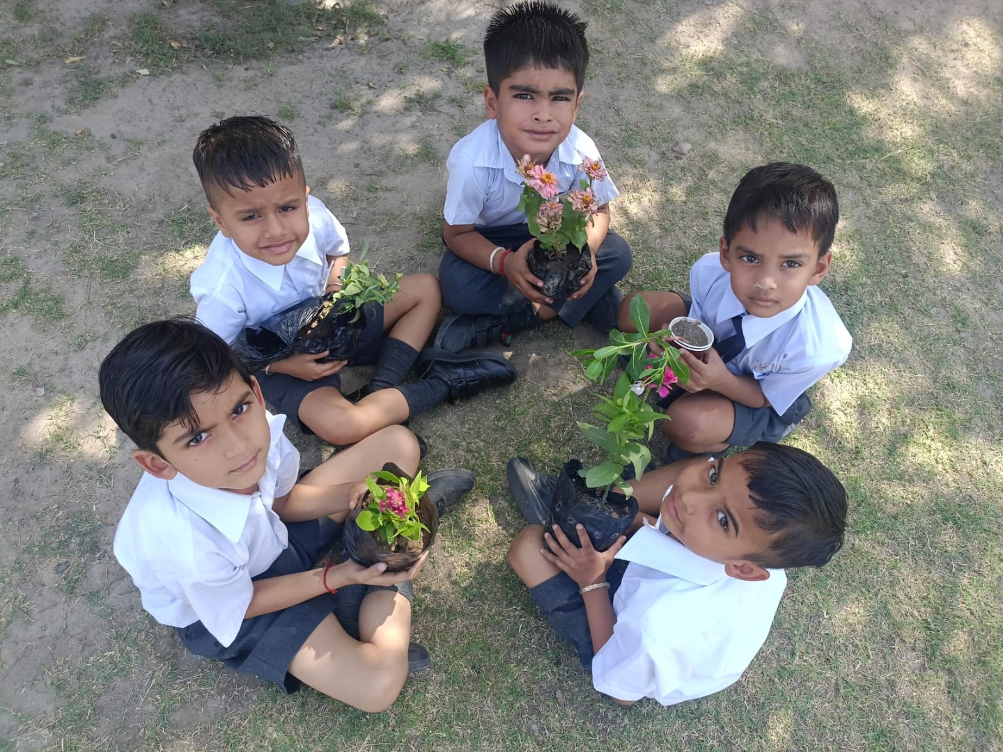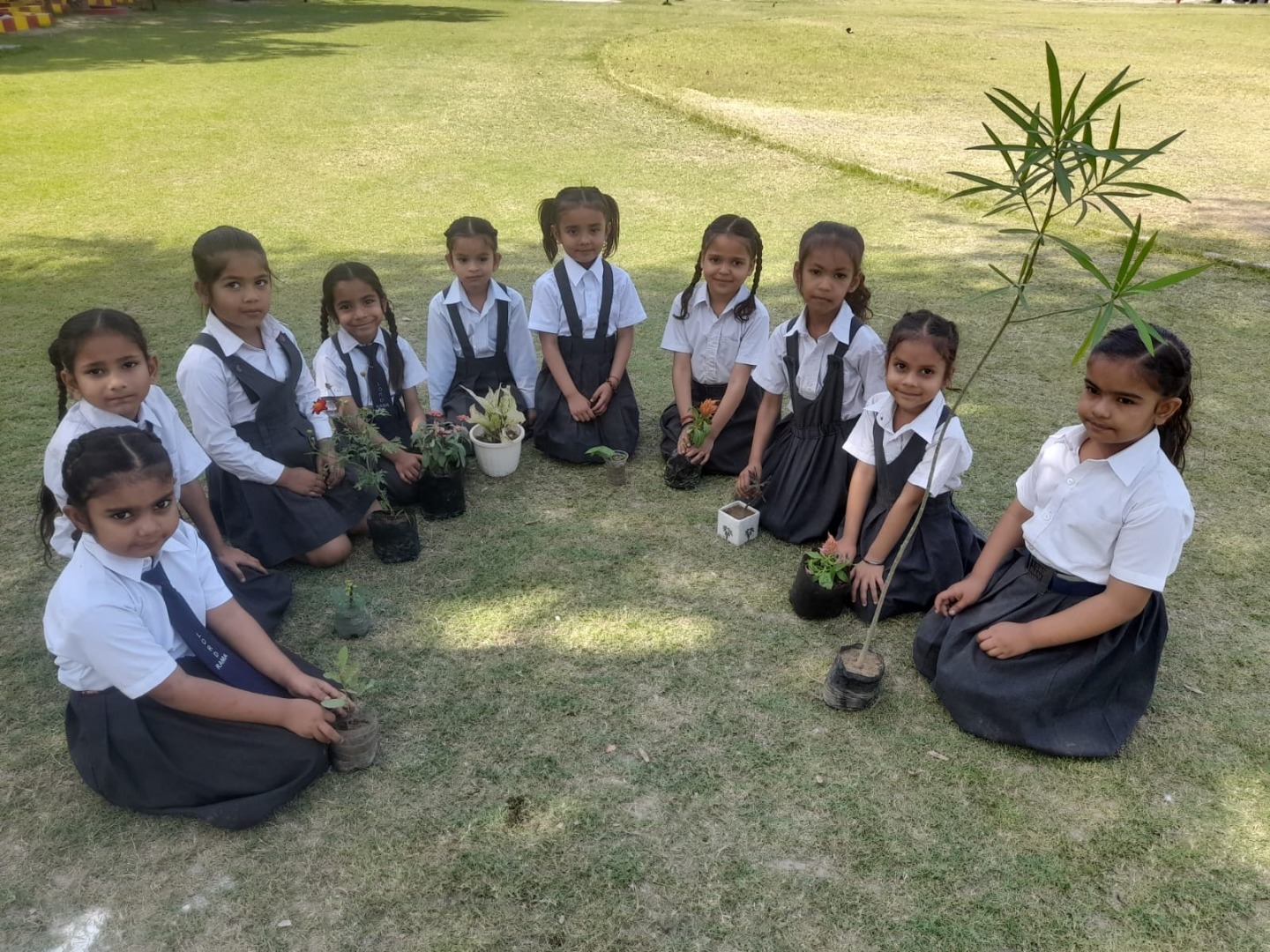 Students preparing and designing the garden with waste material (water bottles, wrappers etc) by learning the 3R system (reduce,reuse and recycling). Birthday students doing plantation in the little garden..